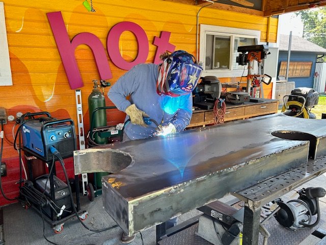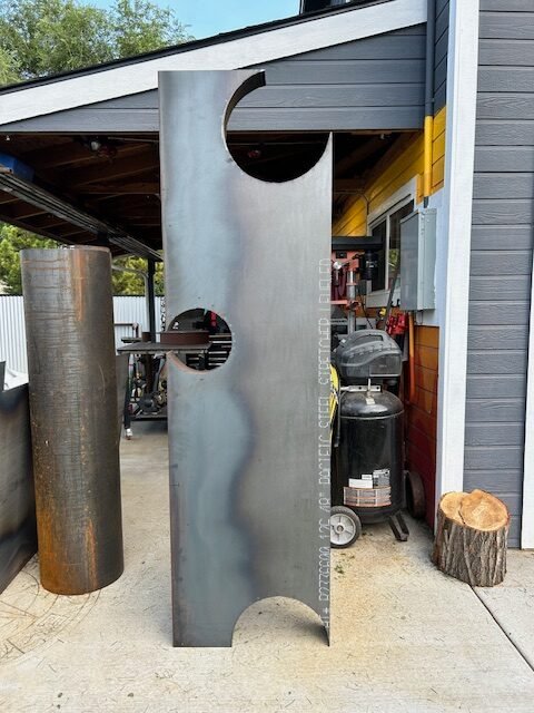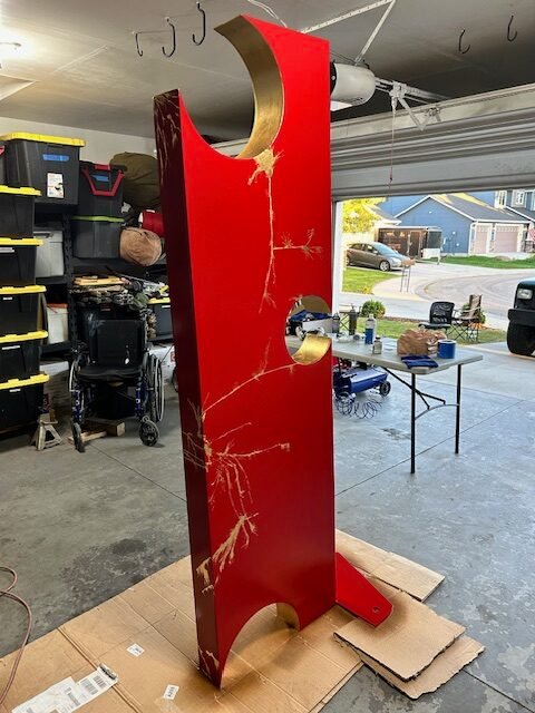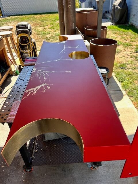 Sheet steel, industrial waste stee pipe, powder coating, gold leaf, clear coat